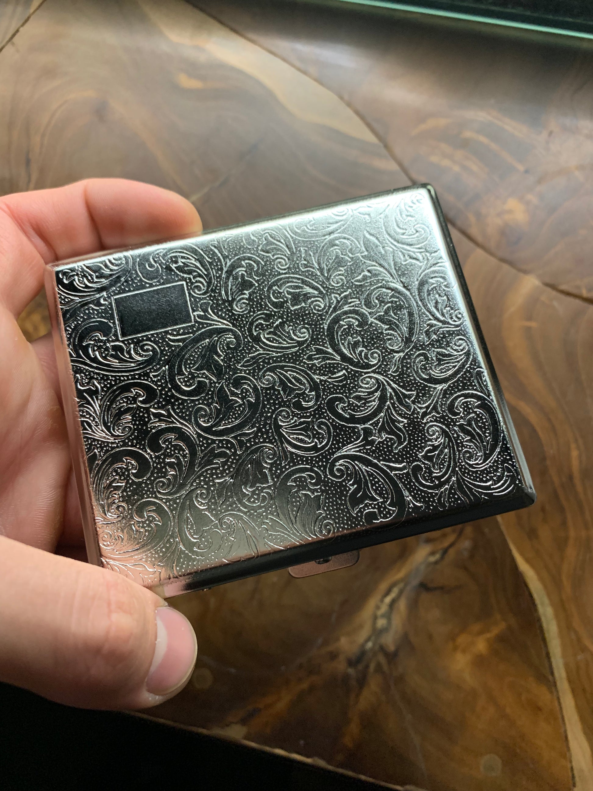 Dieses langlebige und stabil verarbeitete Zigarettenetui vereint klassischen Vintage-Stil mit hoher Funktionalität. Es ist nicht nur robust und gut verarbeitet, sondern auch ein echter Hingucker!